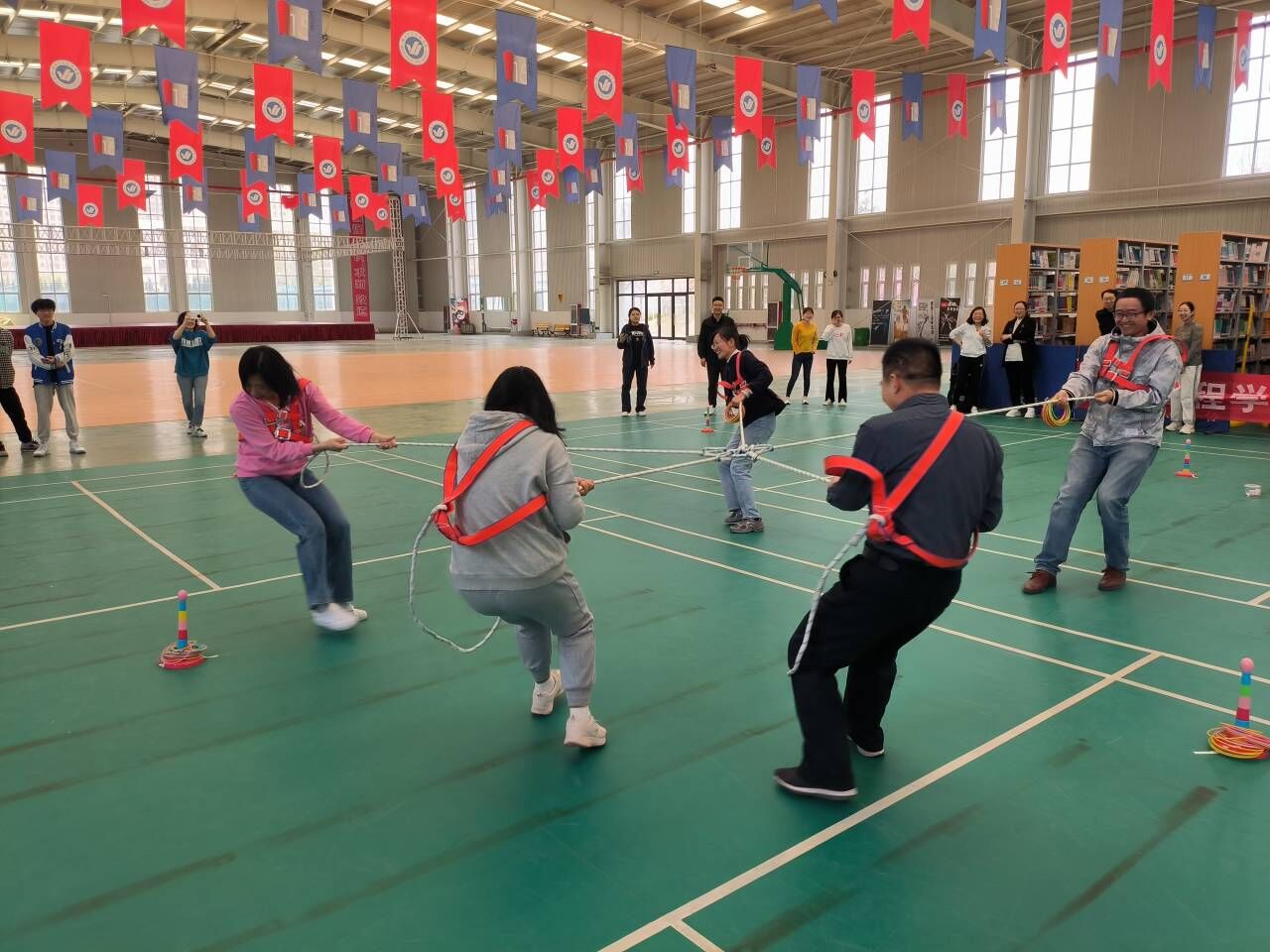 为丰富教职工文化生活,加强教师之间的合作交流,帮助老师们在工作之余缓解压力、放松心情,4月13日中午,英国be365官网工会文体中心举办了教职工趣味拔河比赛公司党总支副书记王明印及全体教职工参加比赛