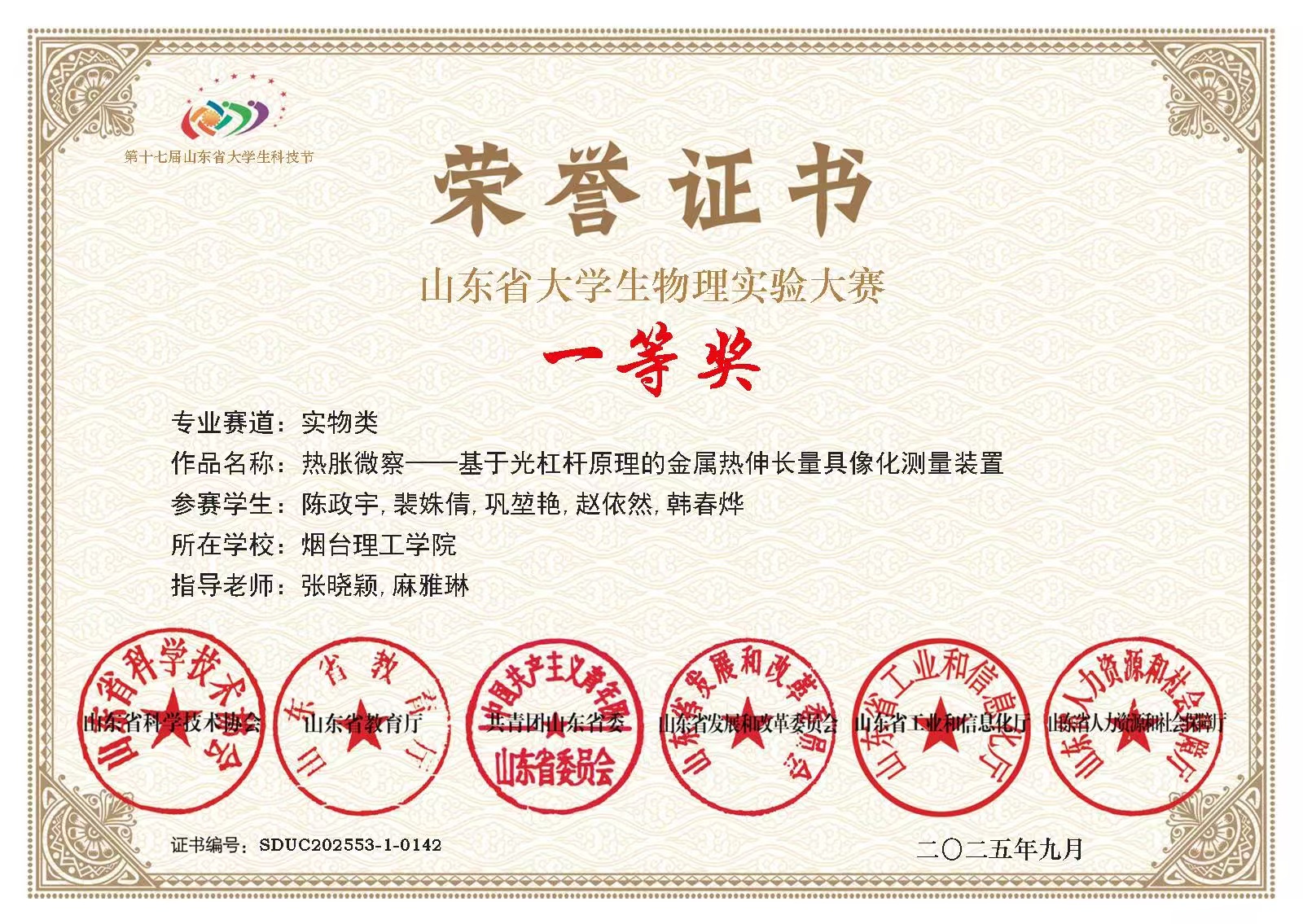 近日,山东省第十七届老员工科技节——山东省老员工物理实验大赛在烟台大学圆满落幕,公司学子凭借扎实的理论功底与出色的实践能力,在全省高校的激烈角逐中脱颖而出,斩获省级一等奖1项、省级三等奖2项,以实力书写科创青春答卷。