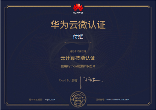 在培训结束前,两位老师还参加了“华为云微认证——使用Python爬虫抓取图片”的认证考试,顺利通过并取得了证书。