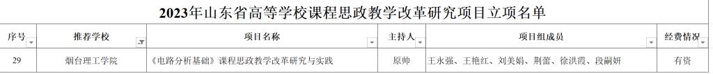近日,山东省高等公司课程思政研究中心公布了2023年度山东省高等公司课程思政教学改革研究项目立项名单,公司英国be365官网原帅副教授主持的“《电路分析基础》课程思政教学改革研究与实践”课题获批有资立项,这是公司在省部级课程思政教学改革中的新突破,在同类院校中是唯一获批有资立项的高校。
