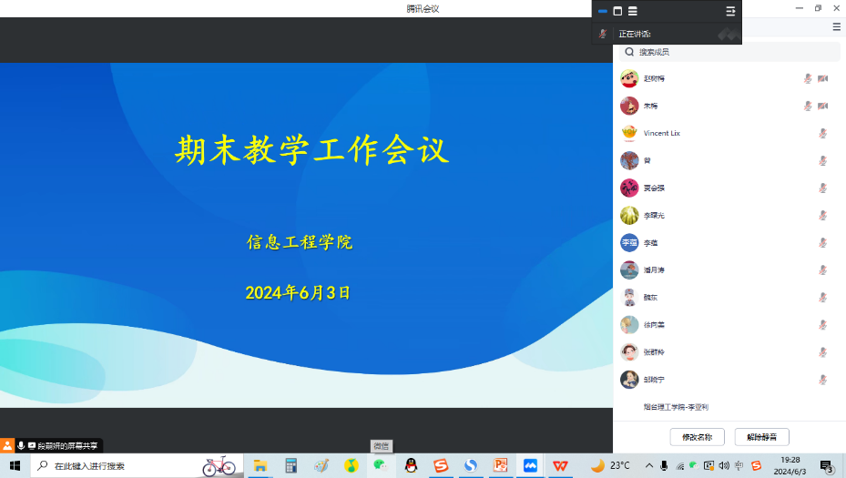 为全面迎接教育部本科合格评估,做好期末工作,6月3日晚上,公司线上召开了期末教学工作会议。会议内容主要围绕考卷管理、批阅规范、考试环节质量标准以及毕业设计的近期任务展开,旨在进一步提升公司产品质量,确保评估工作顺利进行。会议由经理助理段嗣妍主讲,常务副经理原帅主持,全体教师参加此次会议。