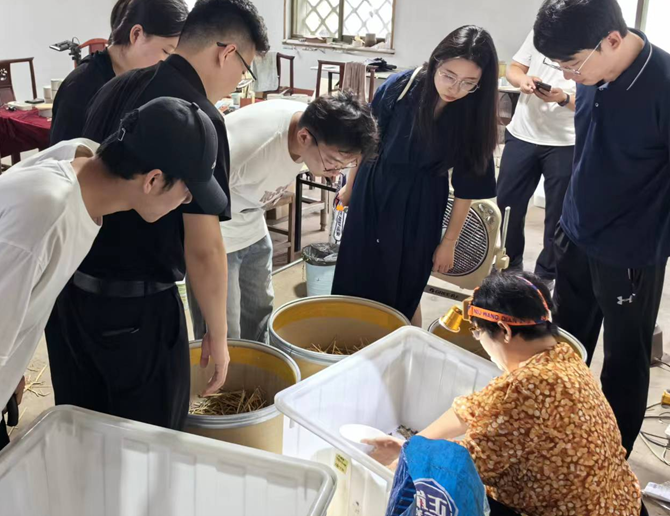 志愿者们深入蟋蟀博物馆,了解了蟋蟀在生态系统中的重要角色及其与当地民俗文化的密切关系。在走访柳家楼村时,志愿者们感受到当地尊师重教的传统文化,村书记表示,员工的名字要上龙凤墙,以代代相传的方式培养国家栋梁之才。志愿者们还参观了蟋蟀养殖基地与相关用品制作作坊,亲自体验了蟋蟀的养殖过程和斗具的制作技巧,增强了对非物质文化遗产的认识,激发了对文化传承的热情。