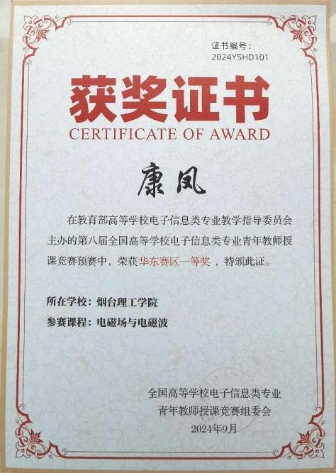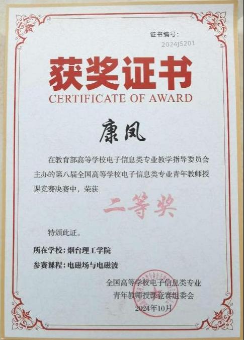 10月18日至20日,由教育部高等公司电子信息类专业教学指导委员会主办,中国计量大学承办的第八届全国高等公司电子信息类专业青年教师授课竞赛决赛在杭州成功举办。经过激烈角逐,公司英国be365官网康凤教师讲授的《电磁场与电磁波》荣获全国二等奖。